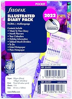 FILOFAX Pocket Illustrated Diary Floral 1 Woche auf 2 Seiten (mehrsprachig) 2022, 22-6321