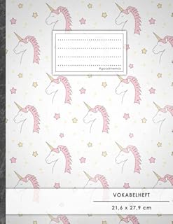VOKABELHEFT DIN A4 • 50+ Seiten, Softcover, Register, Zweispaltig, Erfolgs-Tacker, "Unicorn Girls" • Original #GoodMemos Schulheft • Fremdsprachen leicht lernen, Lineatur 53