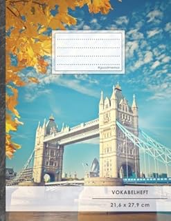 Vokabelheft: DIN A4 • 50+ Seiten, Softcover, Register, Zweispaltig, Erfolgs-Tacker, "Tower Bridge" • Original #GoodMemos Schulheft • Fremdsprachen leicht lernen, Lineatur 53