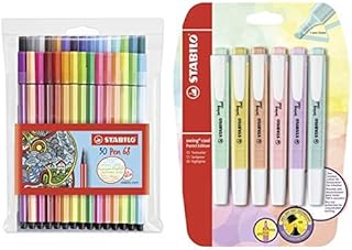 Premium-Filzstift - STABILO Pen 68 - 30er Pack - mit verschiedenen Farben inklusive 6 Neonfarben und Textmarker - STABILO swing cool Pastel Edition - 6er Pack - 6 Farben