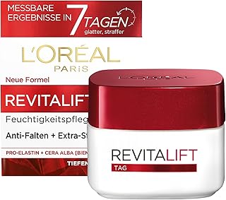 Die Revitalift Klassik Feuchtigkeitspflege mit Pro-Elastin und Cera Alba (Bienenwachs) sorgt für extra Straffheit und einen Anti-Falten Effekt in nur 7 Tagen. L'Oréal Paris Revitalift - die effektive Anti-Aging-Pflegeserie für Haut ab 35. Mehr Spannkraft, ein rosiger Teint und jugendlicheres Aussehen - die Pflegeserie Revitalift der Marke L'Oréal Paris verschönert das Hautbild mit ihren effektiven Anti-Aging-Wirkstoffen. Sie ist speziell für die Haut ab 35 Jahren entwickelt und eignet sich für alle Hauttypen: von sensibler über trockene bis hin zu öliger Haut. Jedes Produkt begeistert durch seine einzigartige Wirkformel. Diese verteilt