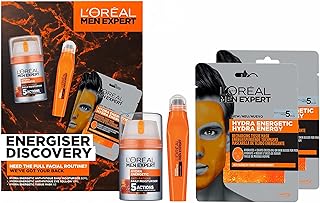 L'Oréal Men Expert Energiser Discovery Geschenkset, Männerpflege-Geschenk für ihn, mit Hydra Energetic Vitamin C Anti-Füdigkeitspflege [50 ml], Anti-Ermüdung Augen Roll-On [10 ml] und Blattmaske x2