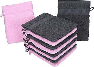 Betz 10 Stück Waschhandschuhe Palermo 100% Baumwolle Waschlappen Set Größe 16x21 cm Farbe anthrazit und rosé
