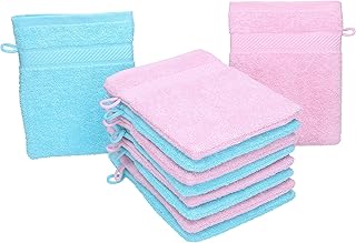 Betz 10 Stück Waschhandschuhe Palermo 100% Baumwolle Waschlappen Set Größe 16x21 cm Farbe rosé und türkis