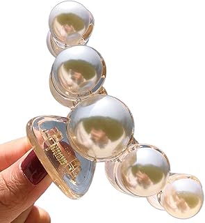 wuzhou Pearl Hair Claw Clip, Mädchen Kunststoff Spring Hair Clip Baden Hochsteckfrisur Pearl Hair Claw Pferdeschwanzhalter, Haar Claw Clips Dickes Haar Champagner groß