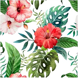 murando Tapete selbstklebend 10m Wandtattoo dekorative Möbelfolie Dekorfolie Fotofolie Panel Wandaufkleber Wandposter Wandsticker - Tropische Blätter Monstera Blumen Pflanzenmotiv b-B-0291-j-b