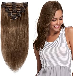 Clip in Extensions Echthaar günstig Haarverlängerung Standard Weft 7A Remy Echthaar 8 Teile 18 Clips Glatt Haarverdichtung 50 cm (105 g) #6 Mittelbraun