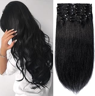 Clip in Extensions Echthaar günstig Haarverlängerung Standard Weft 7A Remy Echthaar 8 Teile 18 Clips Glatt 25cm-75g (#1 Schwarz) …