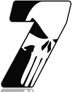 Biomar Labs® Startnummer Nummern Auto Moto Vinyl Aufkleber Sticker Skull Schädel Punisher Weiß Motorrad Motocross Motorsport Racing Nummer Tuning 7, N 367