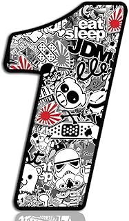 Biomar Labs® Startnummer Nummern Auto Moto Vinyl Aufkleber Sticker Bomb Stickerbomb Motorrad Motocross Motorsport Racing Nummer Tuning 6, N 206