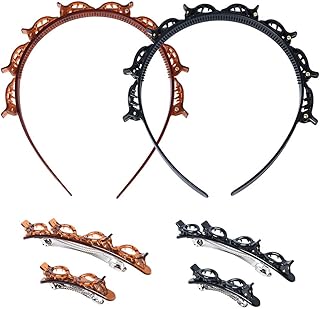 KBLLNPBP Double Bangs Frisur Haarnadel, Twist Clip Stirnband Mit Zahn Stirnband Braid Tool, DIY Haarbänder Stirnbänder, Frisur Pony Wellen Make-up Für Frauen Mädchen (Schwarz+Braun)