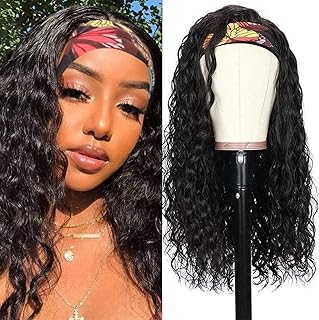 POHOVE Lockig Afro Perücke, Perücke Mit Kopfband, Puff Turban Wrap 2 IN 1 Kinky Curly Haar Synthetisch Hitzebeständig Perücken Für Schwarz Damen für Kopfband - Wie Bild Show, 24inch
