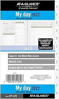 AT-A-GLANCE 10831 Wochen- und Monatsplaner-Nachfüllpack für 2022, Tageskalender, 9,5 x 17,5 cm, Größe 3, tragbare Größe, lose Blätter (471–285Y)